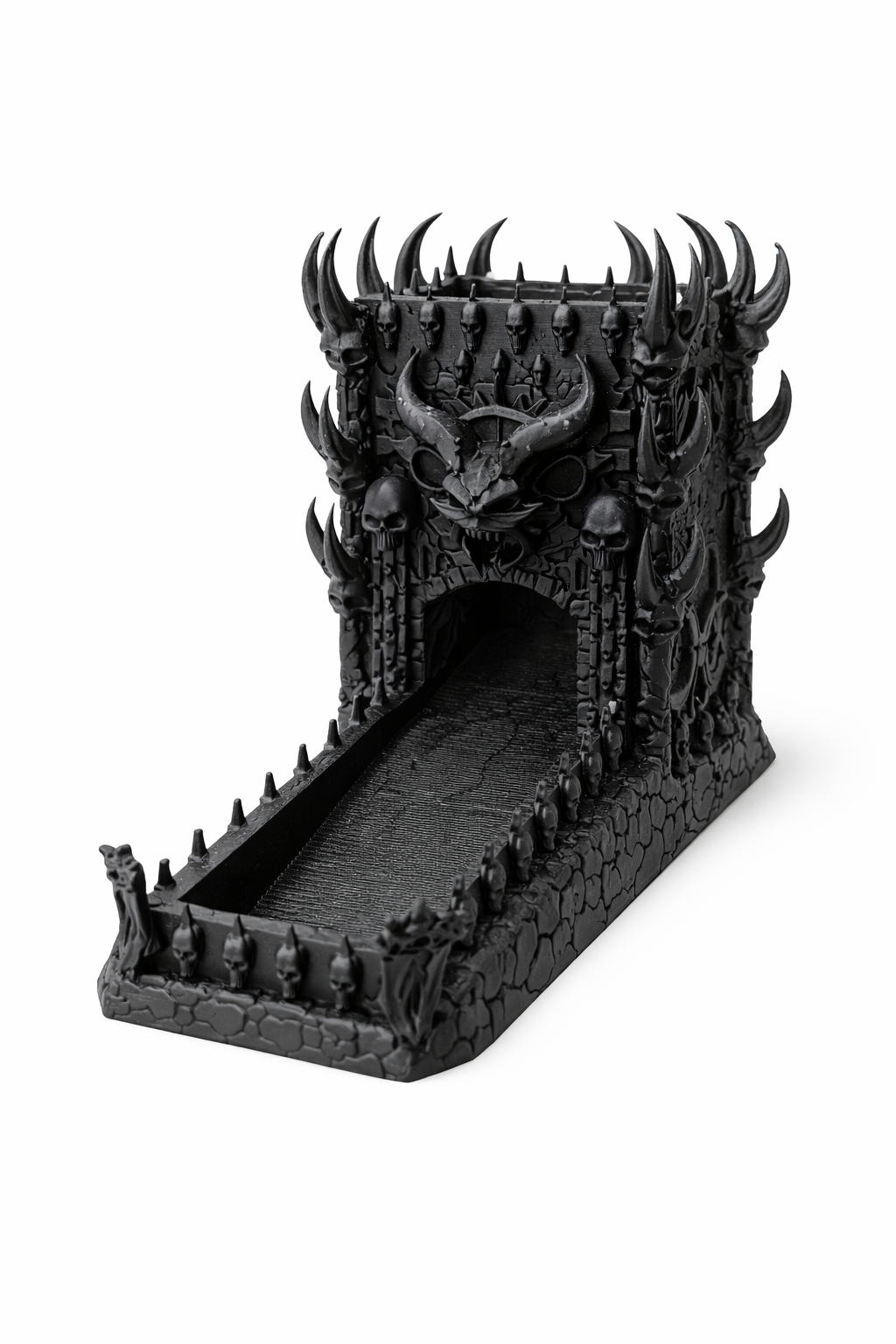 This Gothic Dungeon Dice Tower is designed for serious tabletop RPG players who want more than just a dice roll — they want immersion. Drop your D20 through the raised archway and watch it tumble down the internal ramp before landing cleanly in the front tray.